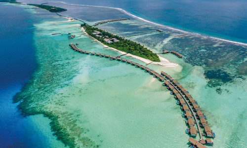Das 5-Sterne-Resort The Residence Maldives liegt im Zentrum der Insel Falhumaafushi. Sie gehört zum Gaafu Alifu Atoll auf den Malediven, auch als Huvadhu Atholhu Uthuruburi oder als Nord-Huvadhu-Atoll bekannt. Die private Urlaubsinsel Falhumaafushi ist unbewohnt. Sie wird mit ihrer Infrastruktur ausschließlich für touristische Zwecke genutzt. Die Anreise ab dem internationalen Flughafen auf Malé, als Hauptinsel der Malediven, im Nord-Male-Atoll dauert mit Maldivian Airline etwa eine Stunde. Ziel ist der Inlandsflughafen Kooddoo Airport auf der gleichnamigen Insel im Gaafu Alifu Atoll. Von dort aus folgt noch eine viertelstündige Fahrt mit dem Wassertaxi. Bereits während des Transfer bekommen Sie die atemberaubende Chance, das gigantische Ausmaß der Malediven zu überblicken – mit Sicherheit eines der Highlights Ihrer Malediven Reise.Beliebtes Ferienresort für Familien und Hochzeitsreisen auf den Malediven