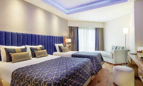 Das Liberty Hotels Lara verfügt über 311 Wohneinheiten. Diese reichen vom Standardzimmer bis zur Präsidentensuite. Maximal fünf Personen finden in den Räumen Platz. Ein Zugang zu einem Balkon oder einer Terrasse ist gegeben. Zum Komfort gehören ein eigenes Bad, eine Klimaanlage, Satelliten-TV und WLAN. Die Räume sind hell und freundlich gestaltet.Buchen Sie schhon heute günstige Badeferien in der Türkei. Gerne beraten wir Sie am Telefon und erstellen ein kostenloses und unverbindliches Angebot für Sie.